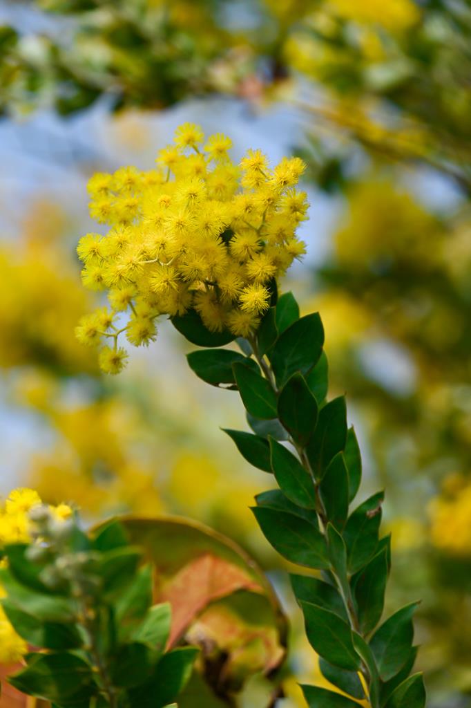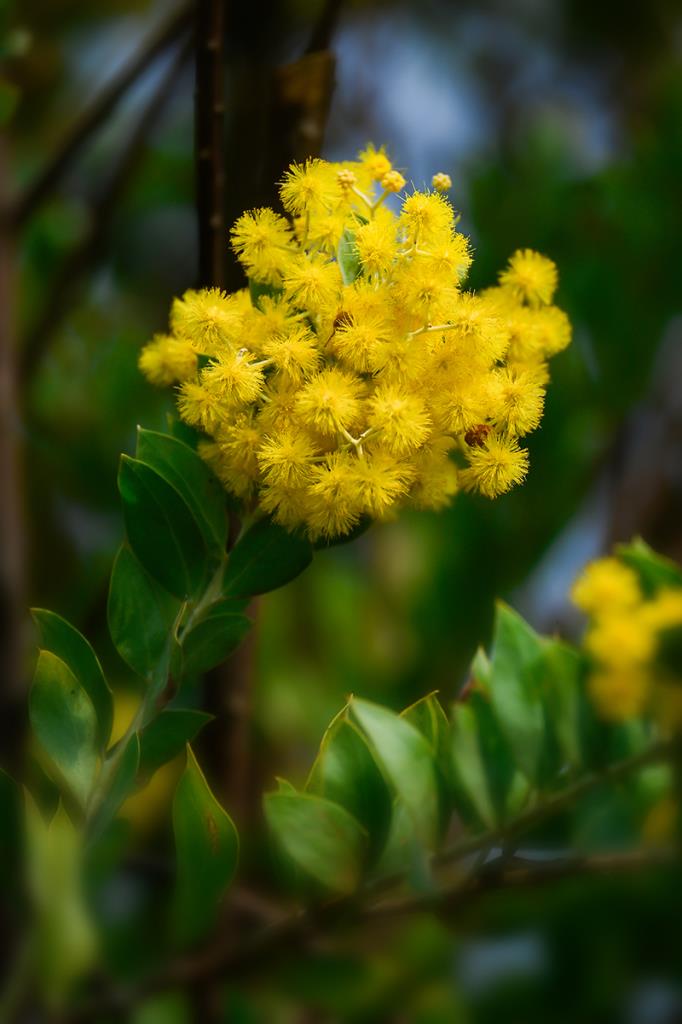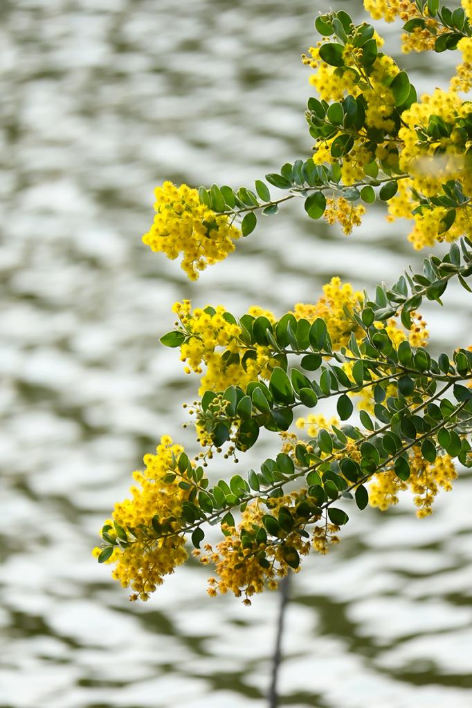 在公园里散步,发现几棵金合欢。阳光斜斜地穿过枝叶,那些绒球似的黄花便亮了起来,像散落的碎金,又像春日里未熄的小小火苗。风过时,羽状的细叶轻轻颤动,花影也跟着晃。走近了,才发觉那花并非一朵朵分明,而是由无数细蕊攒成的团,蓬松、明亮,带着几分野趣。