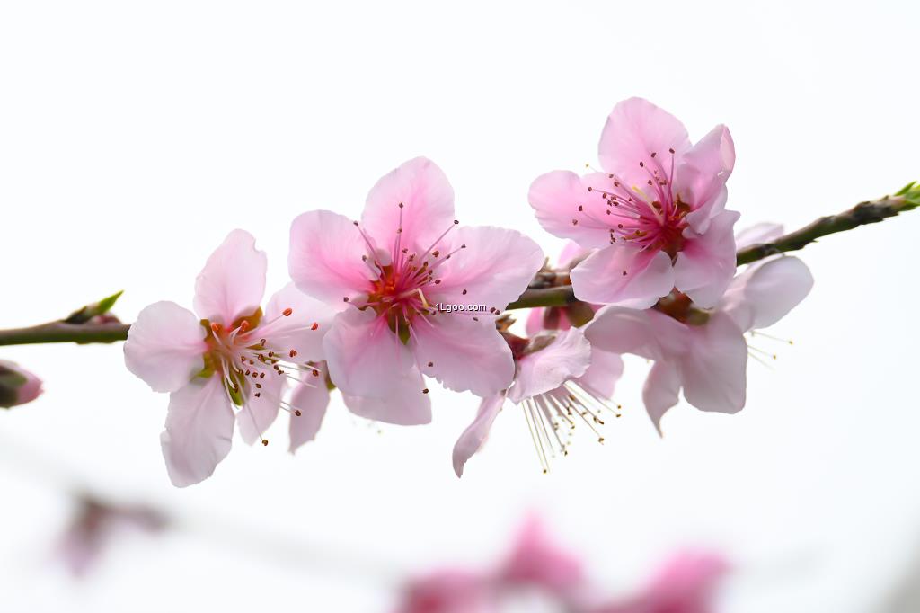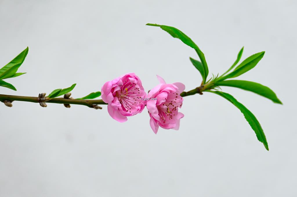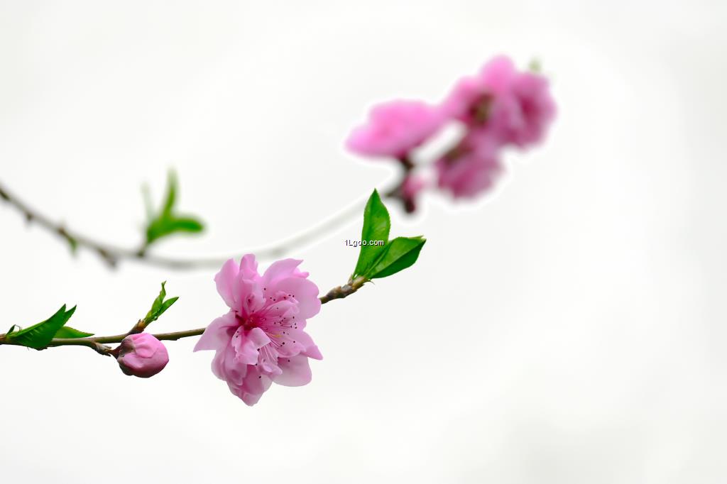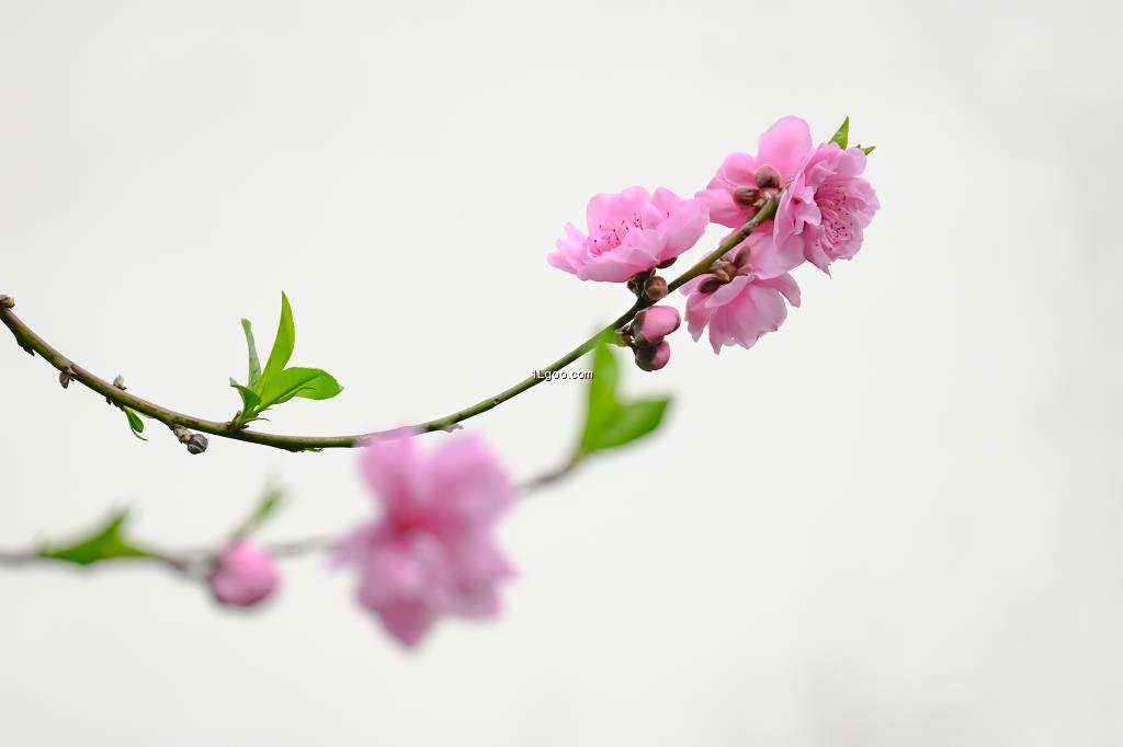 春风轻拂间,那枝头初绽的桃花宛如少女颊边的一抹羞红。花瓣薄如绡纱,从花心浓烈的玫红晕染至边缘的淡粉,似水墨在宣纸上自然洇开,每一片都透着光的灵气。嫩绿的花托托着饱满的花苞,像未拆的胭脂盒,藏着更浓的春意。后景朦胧的花影如烟似雾,与清晰的前景交织出深浅的韵律,仿佛能听见花开时细微的"啪"声。灰白背景似留白,让这抹娇艳愈发鲜活——不似牡丹富贵逼人,不似寒梅孤高清冷,桃花的美是含着水汽的温柔,是生命初醒时最动人的那声轻叹。